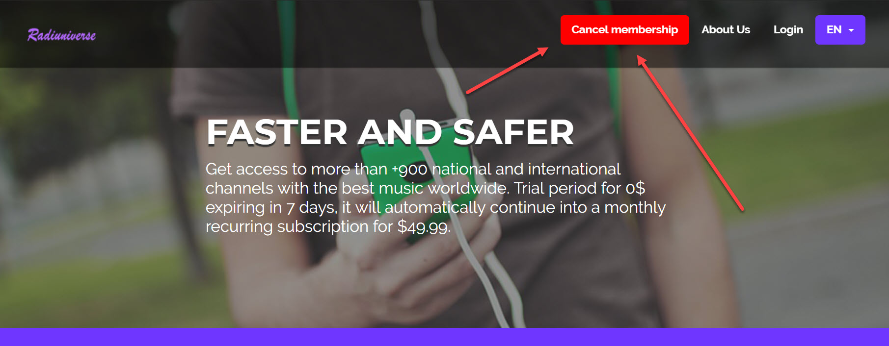 Je suis allé sur le site Radiuniverse, on ne peut même pas s'abonner directement à leur service de musique et même en allant sur "Login", aucune demande d'inscription, seulement un gros bouton pour se désabonner.